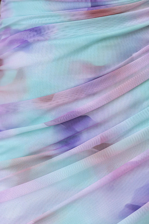 Ruched Sleeveless Cut Out Tie Dye Bodycon Maxi Dress