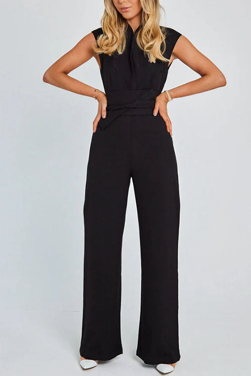 Mixiedress Chic Cap Sleeves Tie Waist Wide Leg Jumpsuit