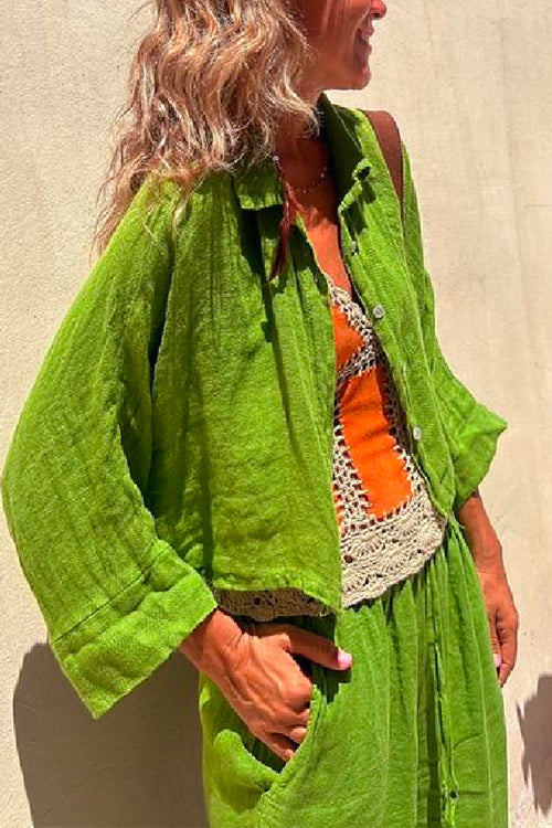 Mixiedress Collared Puff Shoulder Button Up Shirt