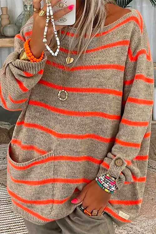 Mixiedress Crewneck Loose Color Block Striped Sweater